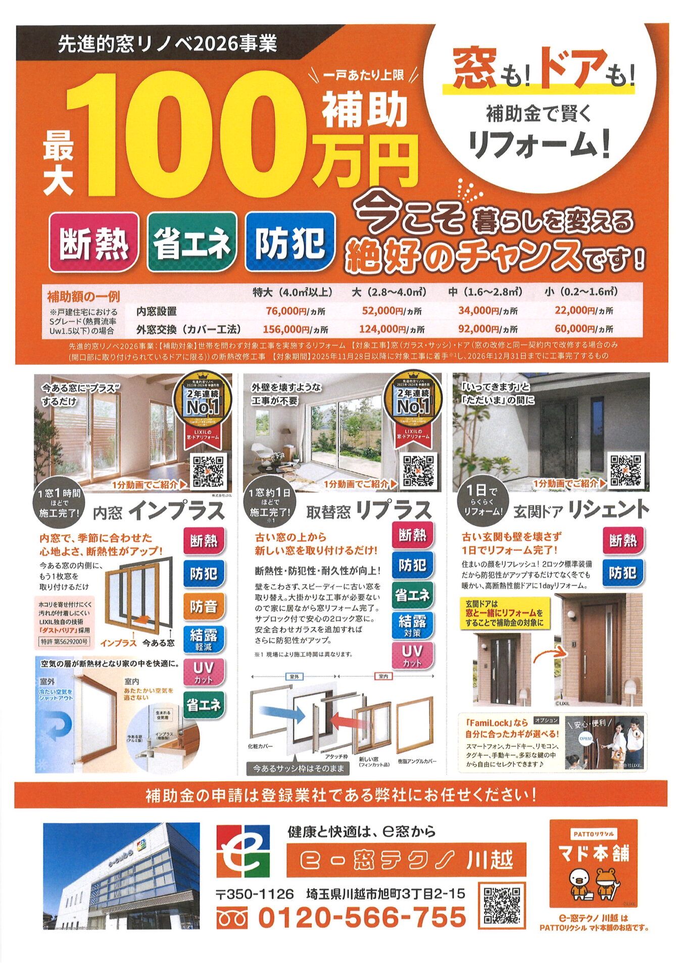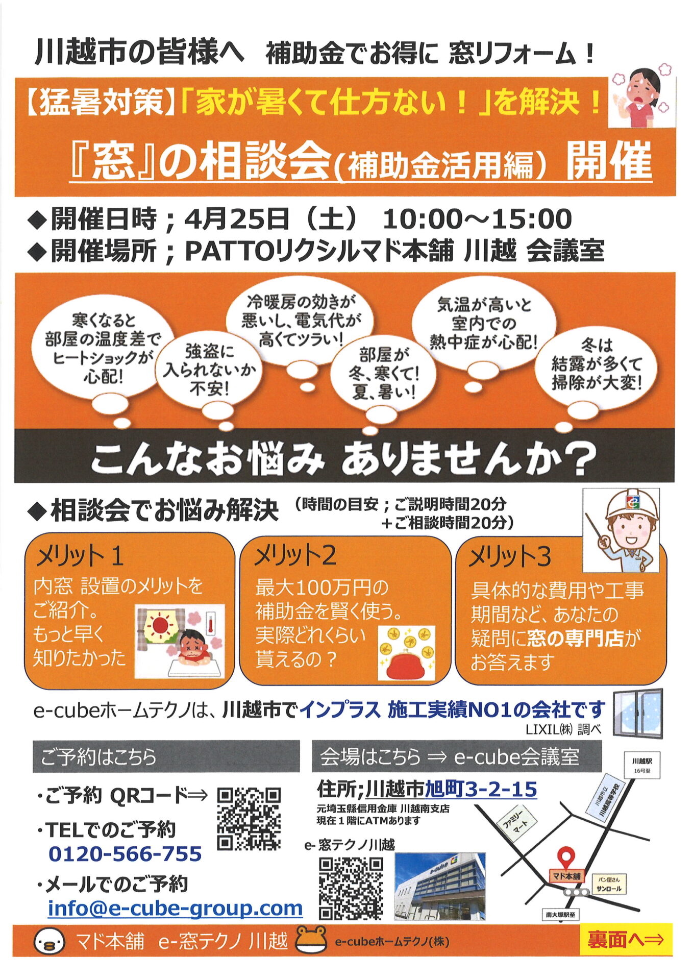 『窓』の相談会(補助金活用) 開催|e-窓テクノ 川越|